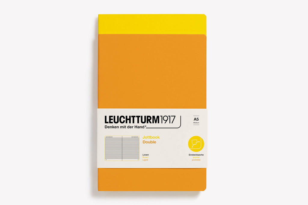 A lightweight, paperback notebook that combines all the fantastic features of a standard LEUCHTTURM1917 notebook while offering better portability, the Jottbook Double notebook sets are a great addition to any note-taking system. Use them by themselves individually, or as part of a larger notebook set-up to keep your thoughts and idea organized.