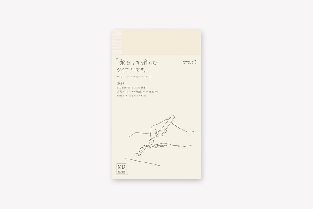 Chronicle your year with the MIDORI MD 2026 Diary. This versatile journal provides pre-dated monthly spreads with lots of added room for extra notes and sketches in the margin. It also includes 113 pages of ruled pages, which can be subdivided to create your weekly spreads. This lay-flat diary is perfect for day-to-day planning, or for recording a short written blurb to reflect on each day's activities.