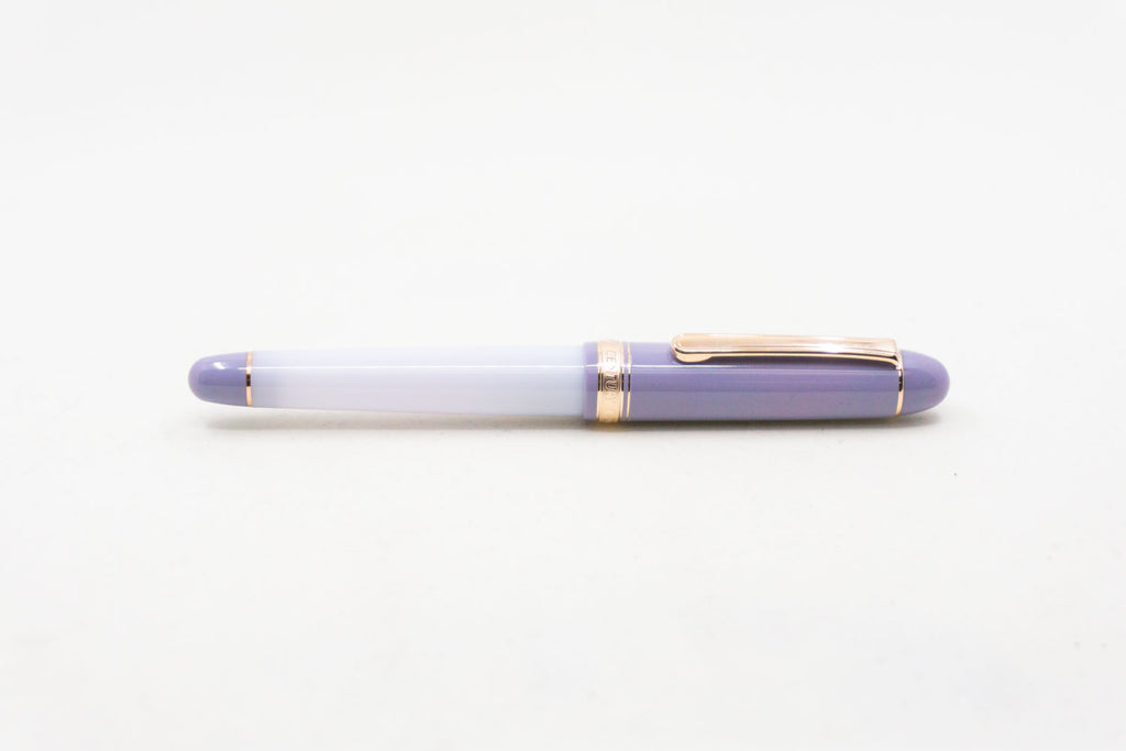 The "Misty Bloom" fountain pen is the second special edition release from PLATINUM's "My Favourite Things" series, and takes inspiration from calm beauty of of flower fields in the soft morning mist. The pen is decorated with touches of purple throughout to represent the endless field of blooms, while the soft, milky white body is reminiscent of the gentle morning dew.
